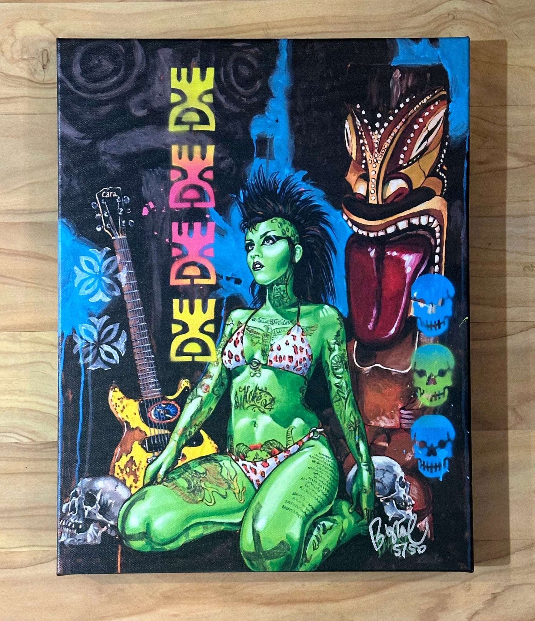 “Malice in the Secret Garden”, which was inspired by self portrait photos by @officialmalicemcmunn, along with #JohnnyThunder’s guitar and a tiki by the legendary Leroy schmaltz. This is an archival quality hand-signed print, created from my original acrylic painting, which is has sold, and is part of my Tiki Punk art series. This is an archival quality hand-signed and numbered canvas giclee print, from editions of 50 prints, created from my original acrylic painting.